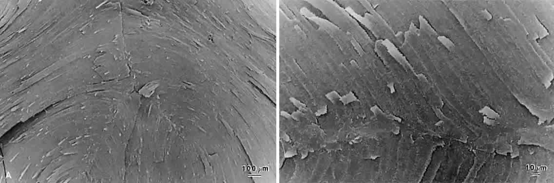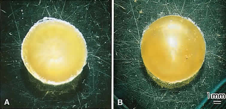 Thus, a compelling argument can be made that abnormal suture planes and cortical cataract opacities are one and the same. At surgery, the cortex of cortical cataract lenses is softer than the nucleus. Histologically, the cortex of these lenses feature swollen and liquefied fibers. It has been proposed that an increased uptake of water forces the cataractous cortical fibers apart between radial cell columns and concentric growth shells (lamellar separation). This proposition leads to speculation that the lens may be attempting to alter the structure of a localized site of increased scatter. Cortical opacities, seen to greatest advantage by retroillumination slit-lamp biomicroscopy, correspond to areas of lamellar separation that in turn are believed to correlate with “fiber folds” seen by SEM.14 Ultrastructurally, the opacities are characterized by variable amounts of degenerated cortical fiber fragments and ceroid bodies (lipofuscin), presumably the result of enzymatic digestion. Morgagnian cataracts are considered a special form of mixed cortical and nuclear cataract typified by complete liquefaction of the entire cortex. Again, it is tempting to speculate that the zones of liquefaction are an attempt by the lens to eliminate areas of scatter. This premise is strengthened by the fact that the nucleus in aged cortical cataract lenses has normal sutures and thus, would not need to undergo any internal alterations to improve light transmission. It also should be noted that to date, aged nuclear cataracts also seem to have normal sutural anatomy. |