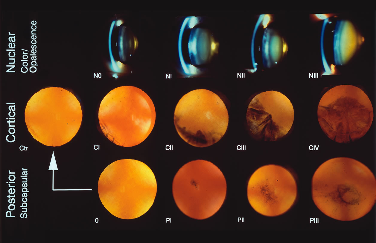 Careful evaluation of the lens is an essential part of a complete eye examination. Cataracts (Figs. 1, 2, 3, 4), in particular age-related or senile cataracts, are among the most common ocular finding in older patients and accounts for up to 50% of blindness worldwide.1-3 In the United States, among Medicare beneficiaries, cataract is the most common condition for which eye care services are sought, accounting for 45% of visits to eye doctors.4 In addition, cataract surgery is the most frequently performed surgical procedure among 30 million Medicare beneficiaries.4 With the prolongation of human life by advances in medicine, increasing numbers of patients with age-related disorders, especially cataracts, are to be expected.