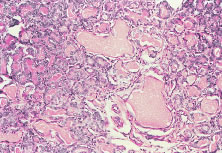 Ocular involvement occurred in 11% of patients with chronic GVHD in one series.327 The ocular disorders associated with GVHD include opportunistic infections, but not all disorders can be attributed to infection. Both prospective and retrospective studies of ocular complications after BMT have revealed the most common ocular finding to be keratoconjunctivitis sicca.328,329 A prospective study of 45 patients who underwent BMT revealed that profound dry eye syndrome and associated keratinization of the ocular surface was related to acute GVHD.329 It has been postulated that lacrimal gland stasis is the cause of dry eyes in acute GVHD330 (Fig. 6), whereas an inflammatory infiltrate may be seen in chronic disease.331 Most cases of sicca syndrome respond well to topical lubricants, punctal occlusion, or tarsorrhaphy. Course epitheliopathies, persistent epithelial defects, and sloughing of the corneal epithelium are sometimes erroneously assumed to be manifestations of dry eyes in patients with GVHD. These changes can occur even in the absence of dryness and are thought to be a direct result of GVHD (Fig. 7). Patients with sloughing of the corneal epithelium may respond to soft contact lens wear, conjunctival flaps, or conjunctival homografts. Topical cyclosporine332 was thought to be useful in five patients, and topical retinoic acid333 in one patient with ocular manifestations of GVHD, but there have been no controlled studies to confirm these effects.