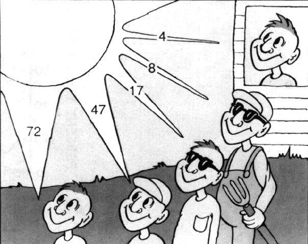 highly focused solar energy.2 Not all bands of electromagnetic radiation emanating from the sun are in the visible spectrum, and many of the nonvisible bands can have a serious impact on biologic function. Although most harmful solar radiation is filtered out by the atmosphere, the sunlight that does reach the earth's surface contains sufficient amounts of ultraviolet radiation (UVR) to cause sunburn3 and various skin cancers.4,5 The changing life-style of persons in developed countries is causing a rapid increase in exposure to sunlight and consequently to UVR. The dermatologic and epidemiologic literature, as well as the lay press, documents a sudden rise in the rate of skin cancers.5 Just as topical sun-blocking agents are prudent measures in protecting the skin from harmful solar radiation, simple practical measures such as wearing appropriate spectacles or a hat can effectively protect the eyes from exposure to UVR type B (UV-B). |