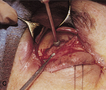 beneath the tarsal plate (Fig. 30). With any of these approaches, dissection can be carried inferiorly