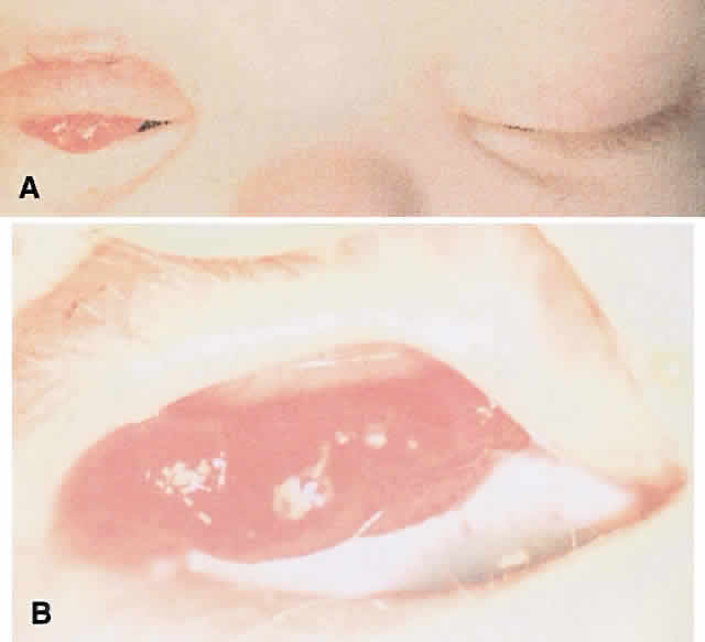 not require a skin incision. INDICATIONS Limited indications for this procedure exist in children with ptosis except for those with Horner's syndrome, which is not uncommon in children, but, when it occurs, any associated ptosis can be corrected with an external levator resection or with a tarsal Müller muscle-shortening procedure. We have not seen a single case of non-Horner's congenital ptosis that was treated adequately with a procedure of the tarsal- Müller muscle type although others have reported excellent results.19 Occasionally, the procedure is useful as an office procedure in an older child or adult with a small residual ptosis when no modification of the lid crease is desired. CONTRAINDICATIONS These procedures are not indicated in the management of non-Horner-type congenital blepharoptosis. If reposition or creation of a lid fold is a consideration, these procedures are not indicated. Conjunctival resection should not be done if conjunctival disease such as cicatricial pemphigoid or Stevens-Johnson syndrome is present. SURGICAL TECHNIQUE The lid is everted to expose the superior tarsal border. Two small curved hemostats are placed across the horizontal length of the tarsus at the height that was determined previously. The tissue incorporated in the clamps is excised. If a suture closure is used, a collagen suture brought into the temporal side of the tarsal plate from the external lid surface is placed superior to the hemostats before the block of tissue is excised. This suture is woven across the tarsus in a mattress fashion to the nasal border, then back to the entrance wound after the block of tissue is excised. A small scratch mark is made in the skin before the lid is everted so that the tied suture can be buried externally. To avoid any risk of corneal irritation from the sutures, some surgeons do not close the wound with suture. A soft absorbable suture seems to minimize this risk. ALTERNATIVE TECHNIQUES The procedure may spare the tarsal plate if special clamps are used or the technique is varied to include only tissues located above the tarsal plate (Muller's muscle and aponeurosis).20 Conjunctiva may be spared if desired, but it is rarely dissected from the other tissues because doing so complicates and prolongs the procedure. RESULTS If the selected procedure is appropriate, the desired results are produced. COMPLICATIONS Corneal irritation from sutures exposed on the conjunctival surface may occur. Suture removal, patching, and appropriate treatment of any secondary infection can manage these problems in most cases. The most likely complication from this type procedure is that it is used for the wrong type of ptosis and therefore proves inadequate. The superior palpebral conjunctiva, with the goblet cells and accessory lacrimal glands, is sacrificed to some degree with this type of procedure unless special techniques are used. DISCUSSION Blepharoptosis in children should be repaired. The primary reason for repair is functional; improvement in appearance is a secondary but important objective of repair. A high incidence of amblyopia occurs with unilateral ptosis. This amblyopia is more likely due to anisometropia than to occlusion of the pupil. The mechanical effect of an atonic lid resting on a soft, pliable infant cornea is presumed to be the underlying cause of the anisometropia, although some experimental evidence suggests that partial occlusion of the visual axis may play a role. Repair of ptosis can produce excellent functional and cosmetic results. The surgeon should endeavor to produce symmetry not only of lid height but also of contour, lash position, lid crease, and skin folds. |